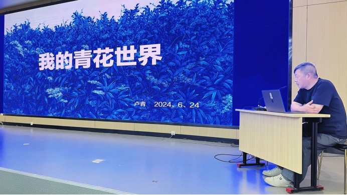 6月24日下午,由教务处主办、视觉传达设计学院承办的国家一流专业建设系列活动—博雅论坛,于长清校区第一阶梯教室举办,邀请著名工艺美术大师卢伟带来了题为《我的青花世界》的精彩讲座。讲座由视觉传达设计学院副院长张培源主持,视觉传达设计学院、现代手工艺术学院部分教师、学生参加活动。