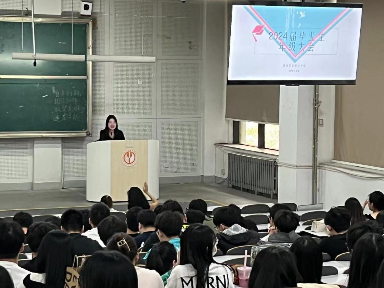 教学秘书王宗艳介绍了毕业生论文收集、答辩等工作的安排,帮助同学们对下一步工作有一个初步的了解,合理规划答辩准备等的进度。