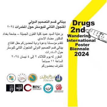 2024年4月2-4日,第二届“反毒品”国际海报双年展在伊拉克巴格达大学美术学院举行。此次展览汇集了34个国家和地区的设计师作品,展示了全球设计师的创意才华,通过海报艺术表达了他们的愿景和期望,为"反毒品"主题创作贡献了独特的视角。