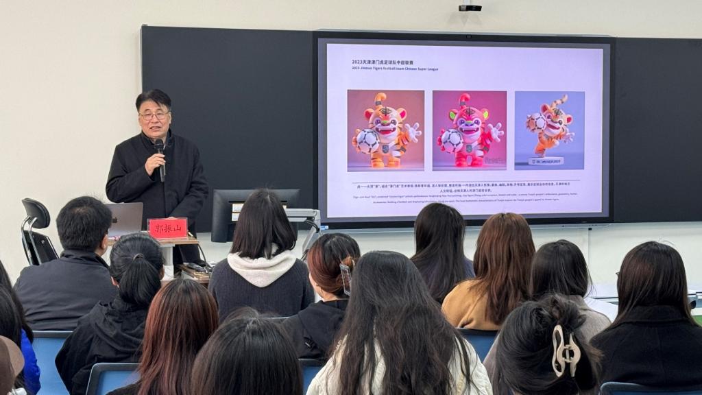 郭振山教授通过对全运会吉祥物的设计,对我国现代吉祥物设计的产生和发展,以及设计发展过程中存在的问题进行了综合阐述。吉祥物的设计是提炼优秀传统文化元素与全民健康的精神标识,对推动现代吉祥物设计的研究具有很好的学术价值与借鉴价值。专题讲座生动详实地为同学们分享了一系列吉祥物设计创作的成功案例,全方位展示了吉祥物从创意构思到设计转化的实践意义。在设计实践与设计教育中要关注社会、关注情感诉求,强化视觉传达设计的特色发展,注重设计融合的地域性文化和时代性特点。指出,优秀的吉祥物设计要遵循民族风格、地域特色、时代特征。在创意与设计过程中,注重地域文化与设计方法的融合;注重体育项目的特色与原则;注重设计的整体形象与典型形象;注重对延展设计项目的创新;注重设计表达的文化内涵语境;注重设计与延展的整体性与功能性。在吉祥物的形象设计升维过程中要把握构思巧妙、造型生动、内涵深刻的设计原则。重点强调吉祥物设计的形态美、色彩美。