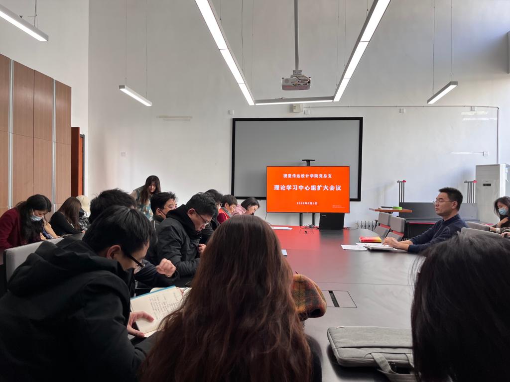 3月1日下午,视觉传达设计学院在学院会议室召开党总支理论学习中心组扩大会议暨全体党员大会,就党的二十大报告开展集体学习,并对院长潘鲁生走访我院时提出的专业发展问题,党委委员、统战部部长孙大刚在参加指导党总支民主生活会时提出的学院改革创新要求进行传达。党总支书记林波主持会议并领学。