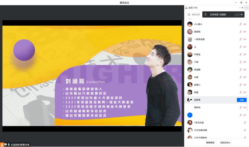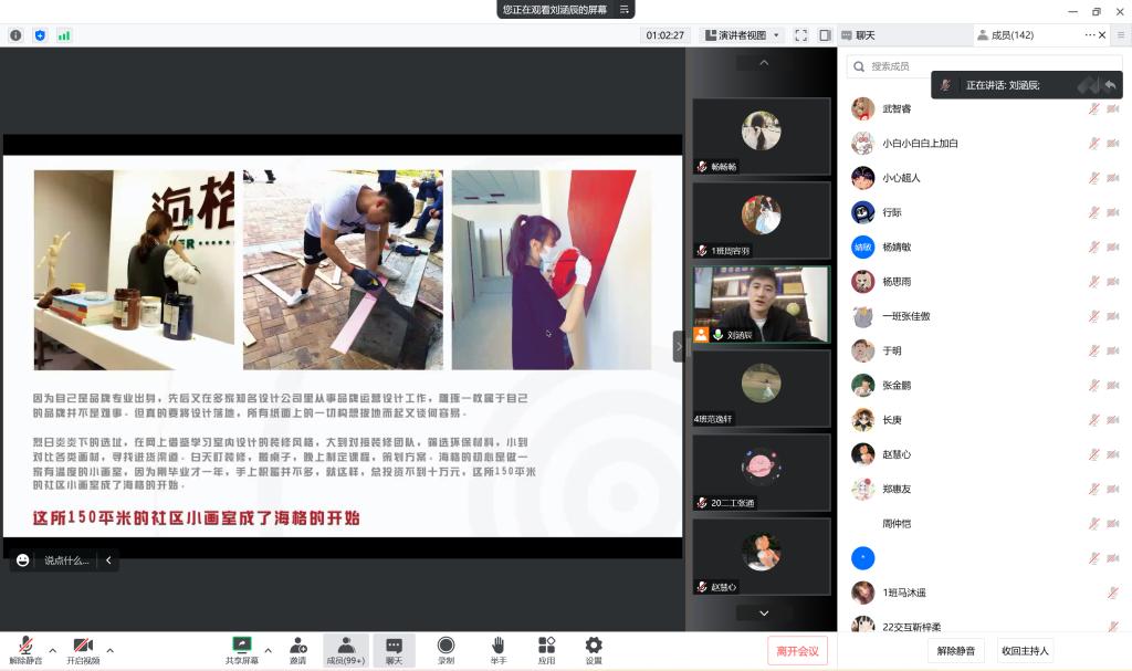 正值秋季招聘关键时期,当前疫情状况一定程度影响了在校毕业生的求职、创业。在日常工作调研、谈心谈话过程中,我们发现不少学生当前面对就业较为迷茫,还有同学有创业意愿,但缺乏针对性指导。为帮助学生正确认识自我,明确个人发展规划,拓宽更多就业渠道,缓解我院学生疫情期间就业压力,帮助学生了解更多就业创业信息,视觉传达设计学院于11月29日晚七点,通过线上形式,举办“选择大于努力,如何让你的优秀远超同龄人”创业与就业形势分析主题讲座。我院2016届优秀校友刘涵辰担任主讲人,毕业班辅导员高畅主持讲座。