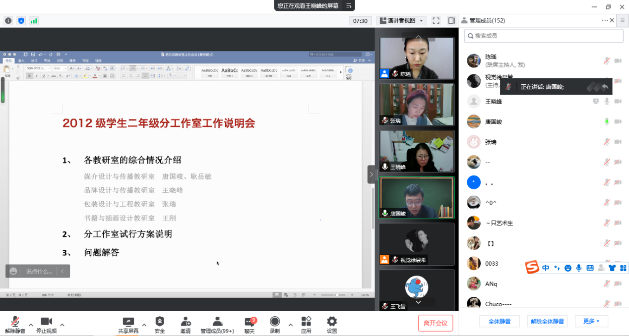 为进一步深化学院综合改革,加强学生实践创新能力,推进本科人才培养模式的改革,结合学校学院学分制改革实际,5月13日晚,视觉传达设计学院召开了线上视觉传达设计专业分工作室宣讲会,旨在增进2021级学生详细了解分工作室工作安排,帮助学生明确方向选择与学业生涯规划。会议由视觉传达设计学院院长王晓峰主持,学院各教研室负责人、年级辅导员及2021级视觉传达设计专业全体学生参加了本次线上会。