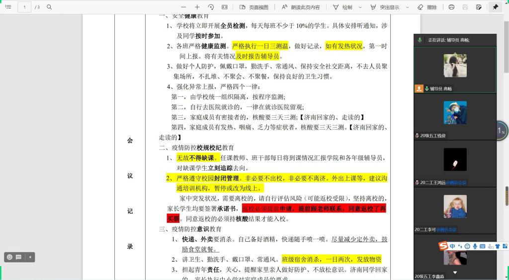 此后各年级辅导员组织本年级学生召开线上专题会议。