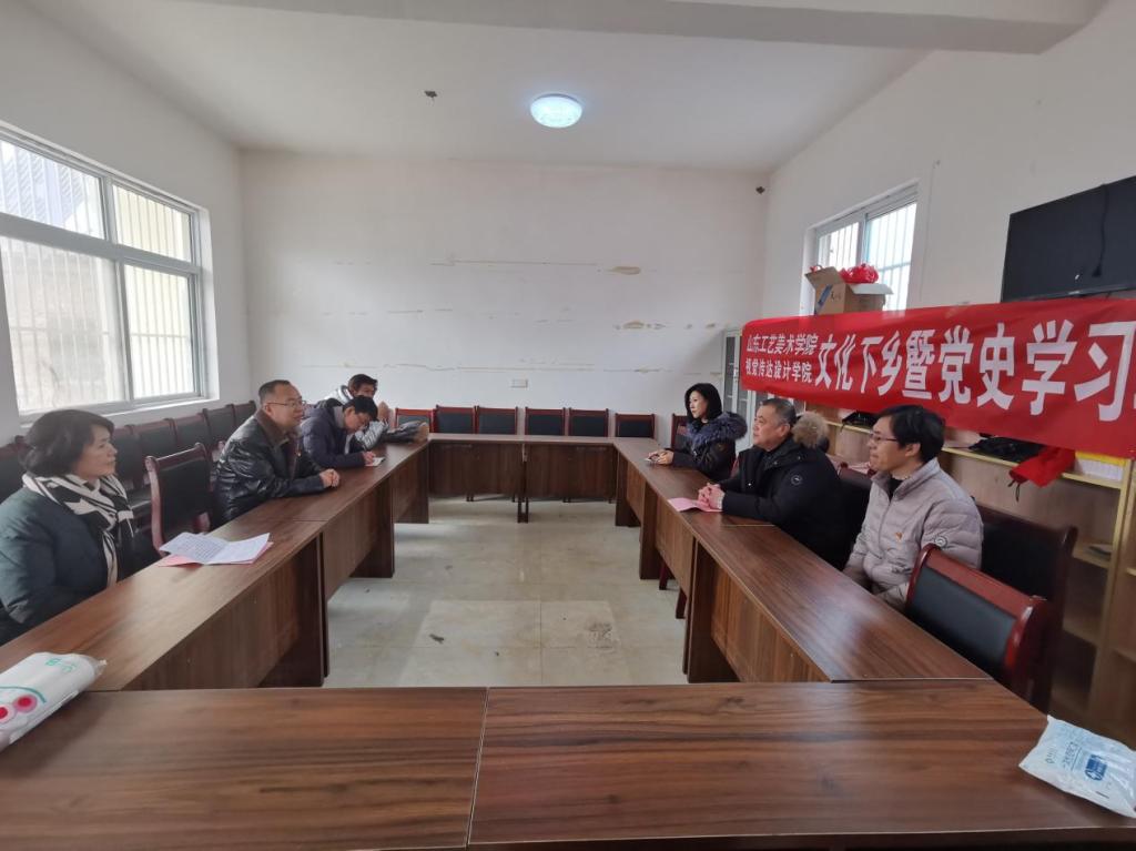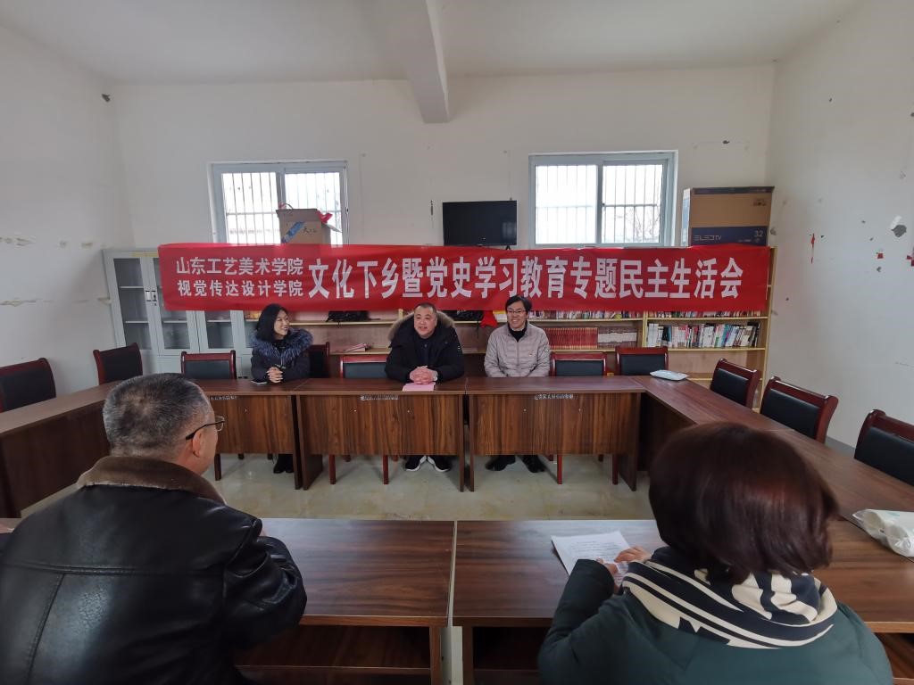 2022年1月4日,视觉传达设计学院党总支书记吴焕文、总支委员郑建鹏、夏军玲在聊城市阳谷县李台镇刘立新村“文化下乡”春节慰问活动现场召开党史学习教育专题民主生活会,党委委员、统战部部长孙大刚作为学校党委领导班子成员参会。大家面对广袤的乡村沃土和新农村建设生动实践,说真话、谈实事儿,从工作实际中反思问题不足,在沟通对话中凝聚共识,将专题民主生活会作为党史学习教育的“规定动作”和严格党内政治生活的生动实践,开出新意、开出实效,在乡村振兴第一线,举行了一场别开生面、卓有成效的民主生活会。