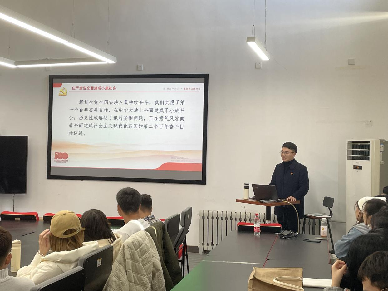 2021年11月11日下午,学校党史学习教育宣讲团成员,思想政治理论教研部邢凯老师来到视觉传达设计学院进行党史学习教育宣讲,全体师生党员、积极分子认真聆听了《学习习近平总书记“七一”重要讲话精神》讲座。
