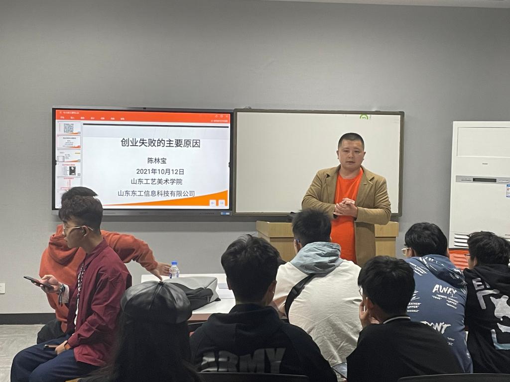2021年10月13日晚,视觉传达设计学院面向2021级新生组织开展创新创业教育。本次活动由山东东工信息科技有限公司、山东织雀信息科技有限公司创业团队主讲。