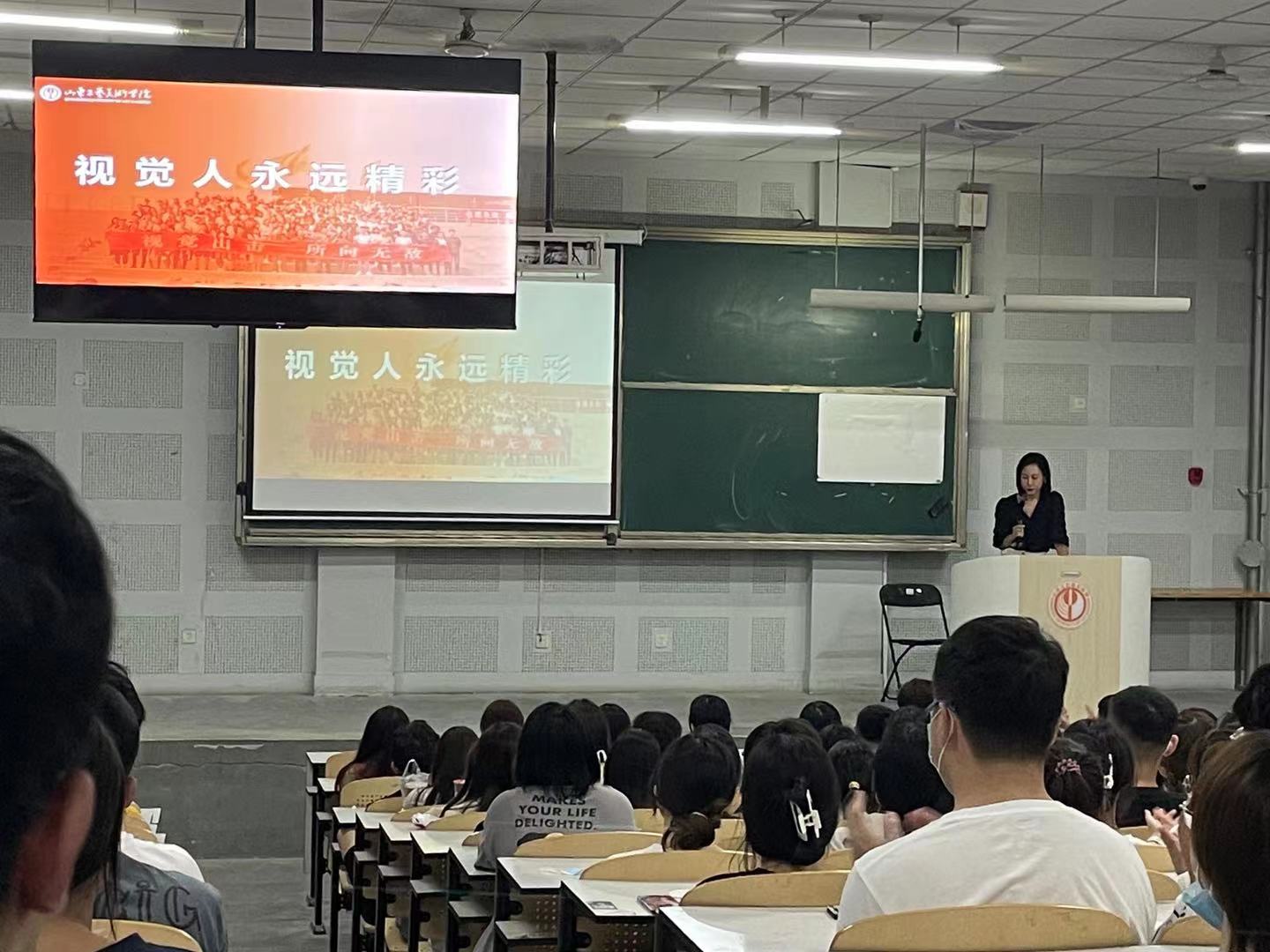会上,陈老师首先代表学院祝贺195位2021级新生加入视觉大家庭,并通过一个短视频,从迎新准备、迎新当日、家长恋恋不舍、核酸检测点、报道现场等多个角度,带大家回顾报道这几天的情形。此后,陈瑶老师以“赢得高考,更要赢在大学”为主题,从“正确看待高考”、“正确认识大学”、“正确把握当下”等几个方面,展开入学教育,与同学们分享自己的感悟。她指出,高考不是终点,大学四年中,希望2021级新生能够热爱集体,以班级和学院为荣,更要努力为集体争得荣誉;要善待自己,养成良好的生活习惯、强大的内心;要尊重他人,学会与身边人和睦相处,尊敬师长;要永远学习,把学习当成毕生的任务,养成学习的好习惯;要经营一份自己的事业,积极投身学生工作、社团活动,在工作中收获友谊、收获价值、锻炼自我;要相信未来可期,有努力的方向,也要有平常心,正确对待得失,一步一个脚印,走好大学路。