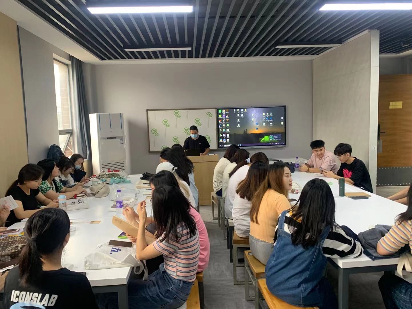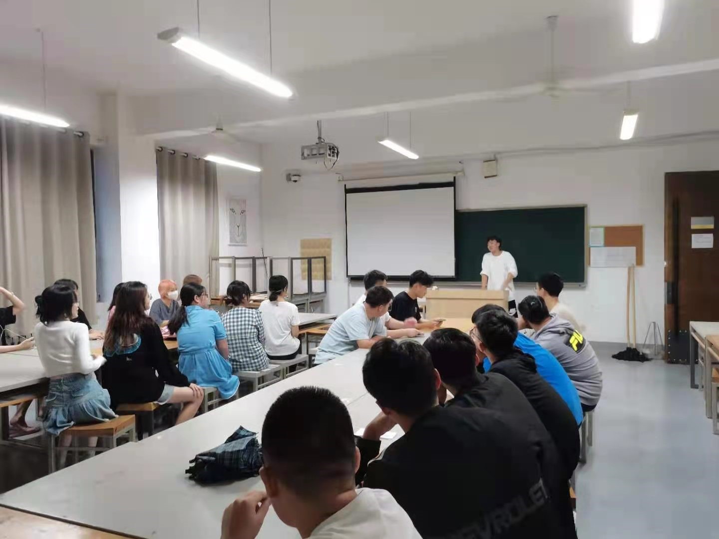 晚间,各班结合会议要求,召开主题班会、布置新教师。辅导员老师深入各班,交流了解各班班会情况,为同学们解疑答惑。