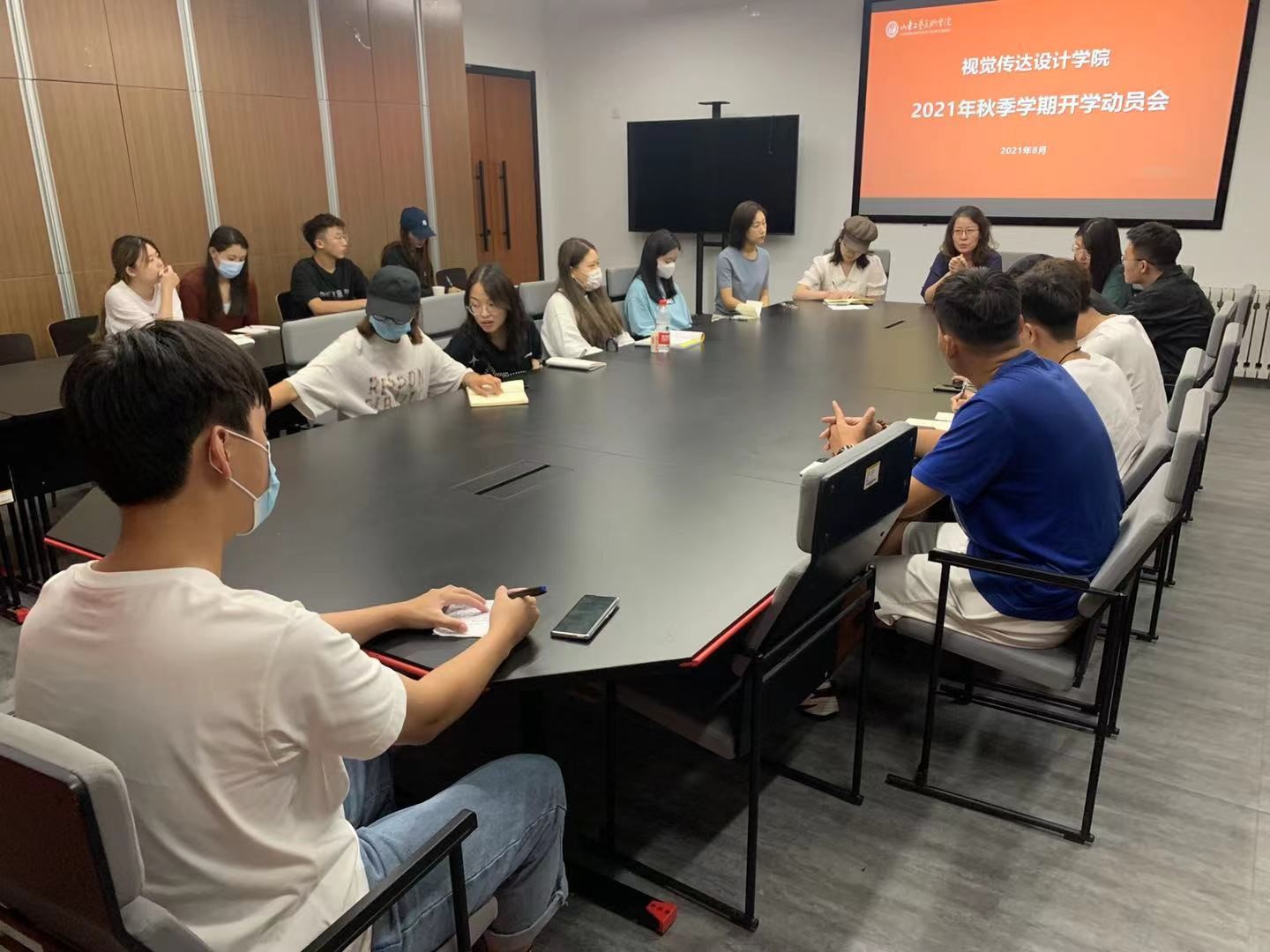 8月29日,视觉传达设计学院在学院三楼多媒体教室召开新学期学生工作部署会暨首次学生干部会议。本次会议由辅导员高畅主持,视觉传达设计学院副院长王晓峰、团总支副书记陈瑶、辅导员王敏、朱晓晨出席了此次会议。会上,高老师对开学期间工作进行了部署。各班做好同学们返校情况,及时了解班里同学的心理状态;结合疫情防控常态化工作要求,明确了校园防控、一日三测温制度、外出请销假制度;利用晚自习时间召开主题班会。辅导员朱晓晨对开学相关工作进行了补充,辅导员陈瑶敦促与会的学生干部,在本学期的学习、工作、生活各方面,充分发挥模范带头作用,争取学院学生工作新的提高。此后,副院长王晓峰部署了新学期开课前相关准备工作。