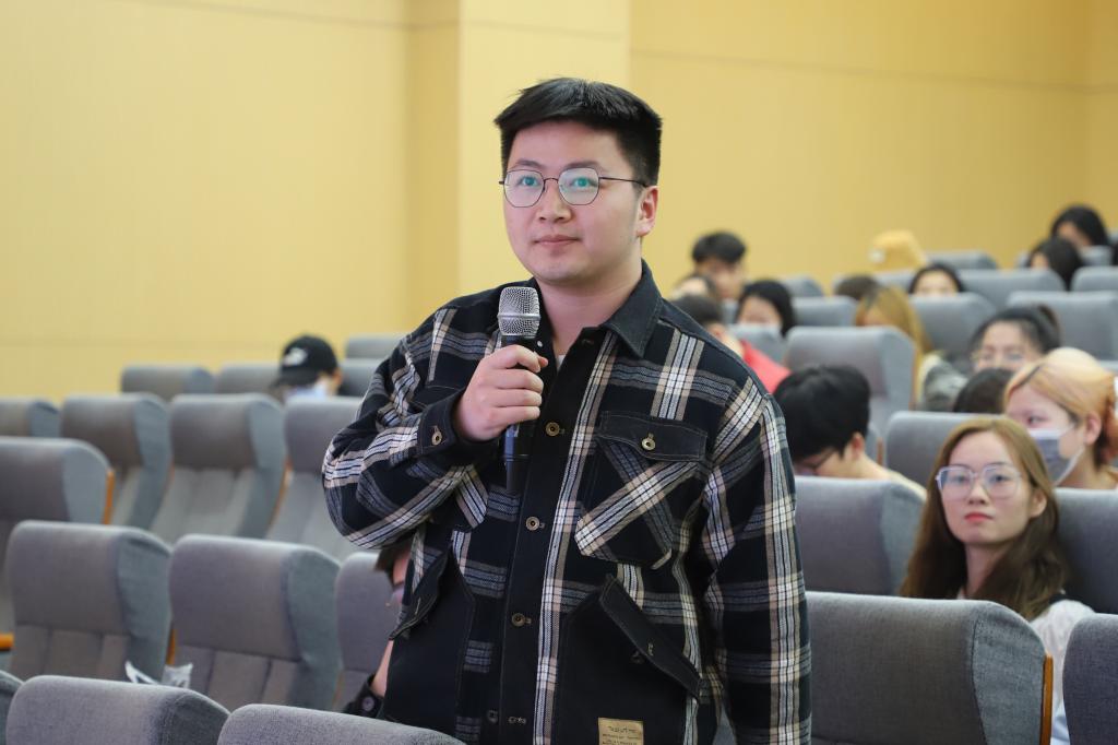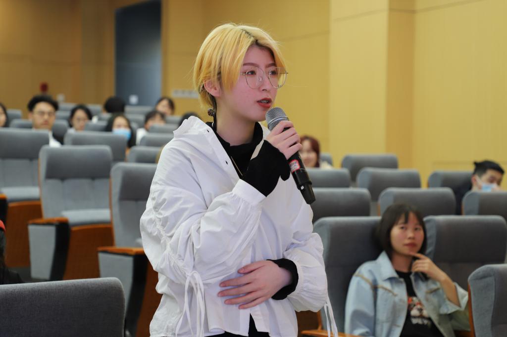 之后,吴春晖教授从设计的起源到设计的创新,最后到设计的价值与管理,阐述了设计在市场营销及人们生活中的应用,并在商业过程中创造新的价值,强调了设计需要与经营相结合的重要性。讲座接近尾声,同学们就对此次专题讲座向吴春辉教授展开提问,交流现场氛围活跃。期望广大同学们能积极参加全国大中学生第十届海洋文化创意设计大赛。最后,对吴春晖教授的精彩讲座再次表示衷心的感谢。