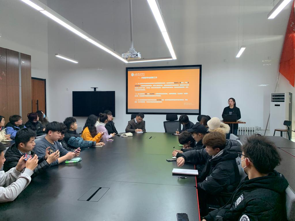 会上,高老师对学院学生安全教育及安全排查工作进行了总体部署,要求全体学生干部开展好学生摸排工作,包括学生纪律教育和行为规范管理落实情况、学生宿舍中的安全隐患、走读学生外宿及学生私自在校外租房情况、宿舍学生之间以及学生在其他社会关系问题上的纠纷和矛盾等;做好寒假离校信息统计工作;开展好学生安全教育工作,对交通安全、安全防范教育、心理健康安全、防诈骗安全等进行了重点强调等。