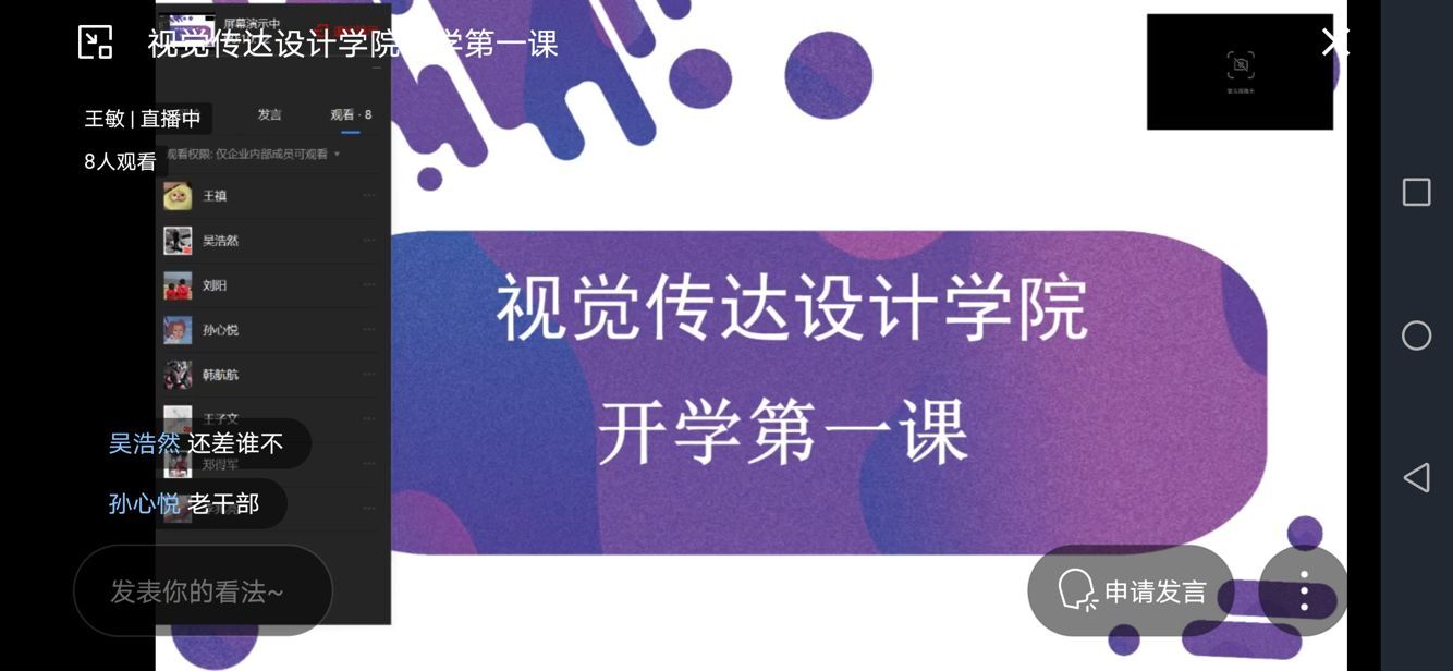 2020年5月25日,视觉传达设计学院开展了线上“开学第一课”主题活动。疫情过后,毕业生们重返校园,为保证同学们在校的安全,普及在校防疫知识,视觉传达设计学院特别开展“开学第一课"主题活动。本次活动由学院团总支书记刘阳、辅导员王敏主持,16级全体返校同学参加。