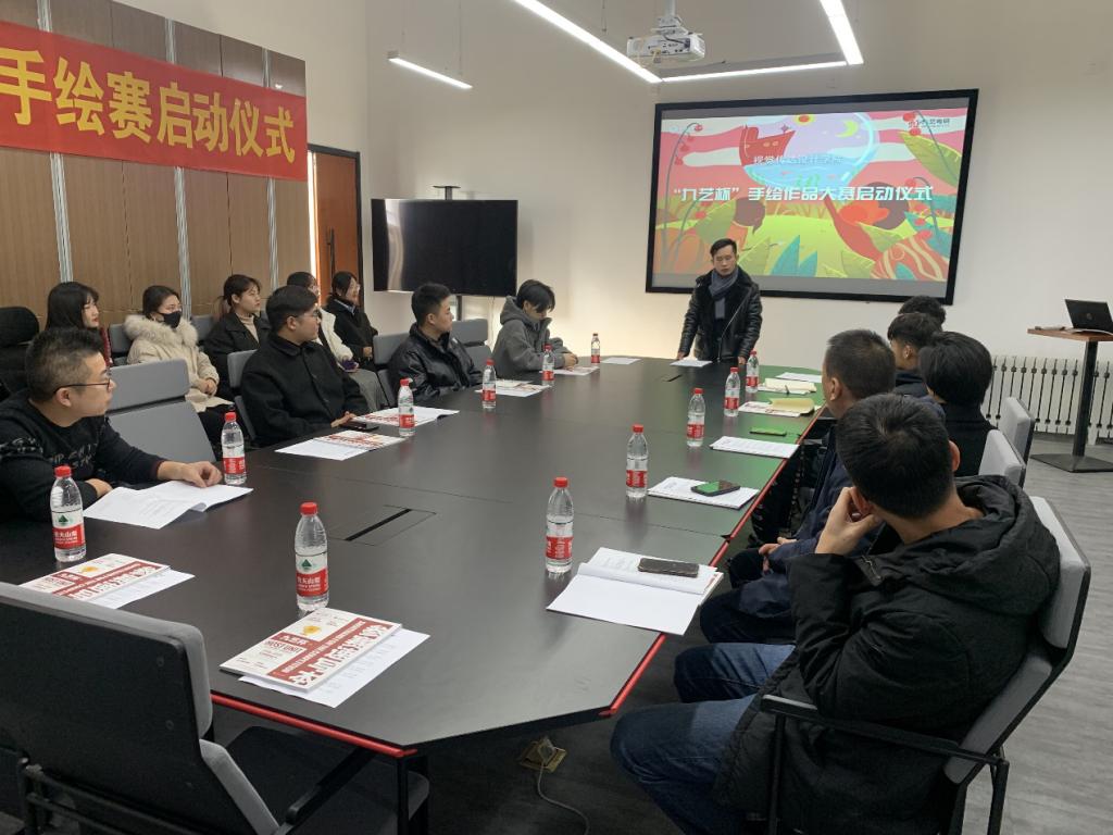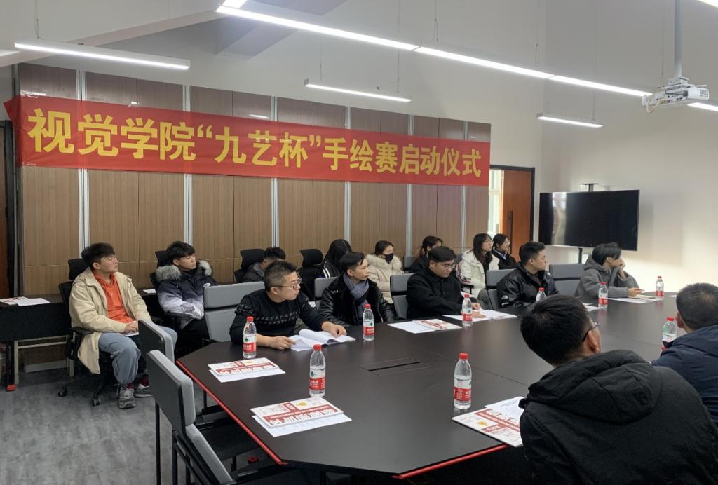 2019年12月10日下午视觉传达设计学院于办公楼三楼多媒体教室举办“九艺杯”手绘作品大赛启动仪式,视觉传达设计学院党总支副书记刘爱民、辅导员陈瑶,九艺工作室云湖王刚、骆微、戴莹老师出席了本次活动。