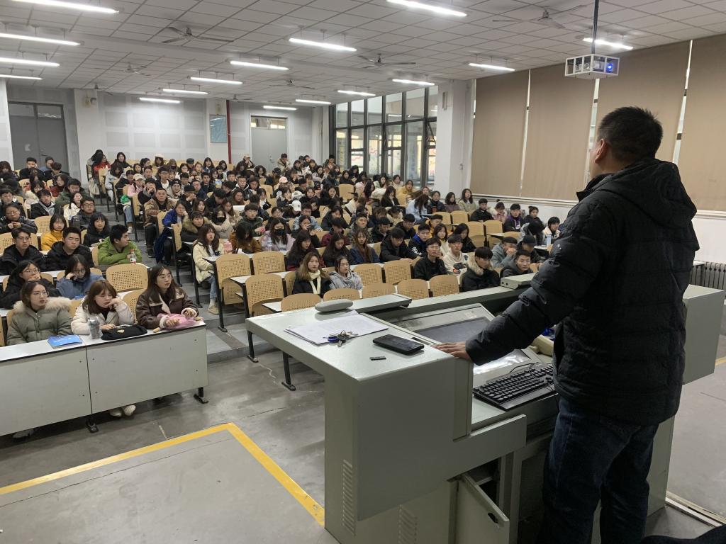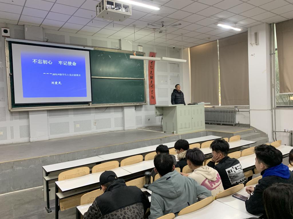 2019年12月3日下午,视觉传达设计学院党总支副书记刘爱民在七合堂,结合我校当前正在开展的“不忘初心,牢记使命”主题教育,给2019级新生上党课,对新生进行入党启蒙教育。