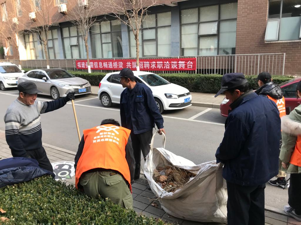 下午15:00,学生党员们在校园内集合,首先分小组划分了卫生责任区,然后根据分工开始了热火朝天的环境卫生清扫。初冬的天气有些寒冷,但大家冒着冷风,不怕脏、不怕累,不放过角角落落,个个干劲十足。清扫活动持续了一个多小时,校园被清扫的干干净净。