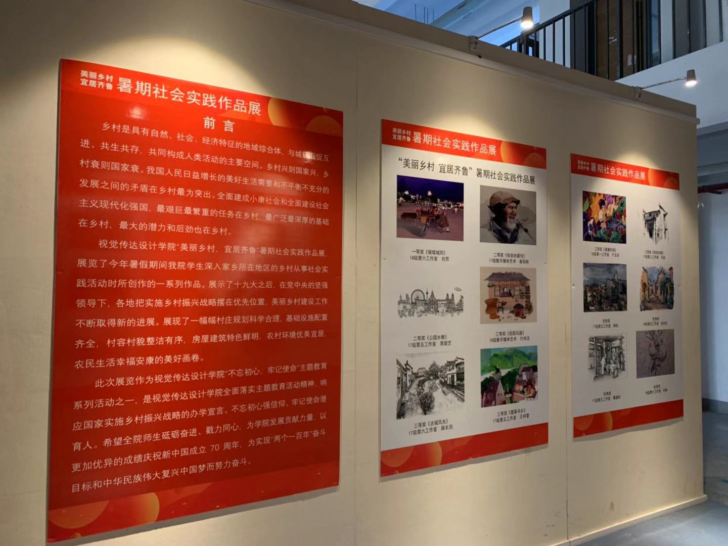 根据学院“不忘初心、牢记使命”主题教育工作部署,视觉传达设计学院党总支立足专业特色,创新主题教育形式,将专业教学与主题教育相结合,于11月4日推出“美丽乡村宜居齐鲁”主题教育系列展览,力争使主题教育取得实效。团委书记邹晓红、视觉传达设计学院党总支副书记刘爱民、团总支书记刘阳于当日参观了展览。