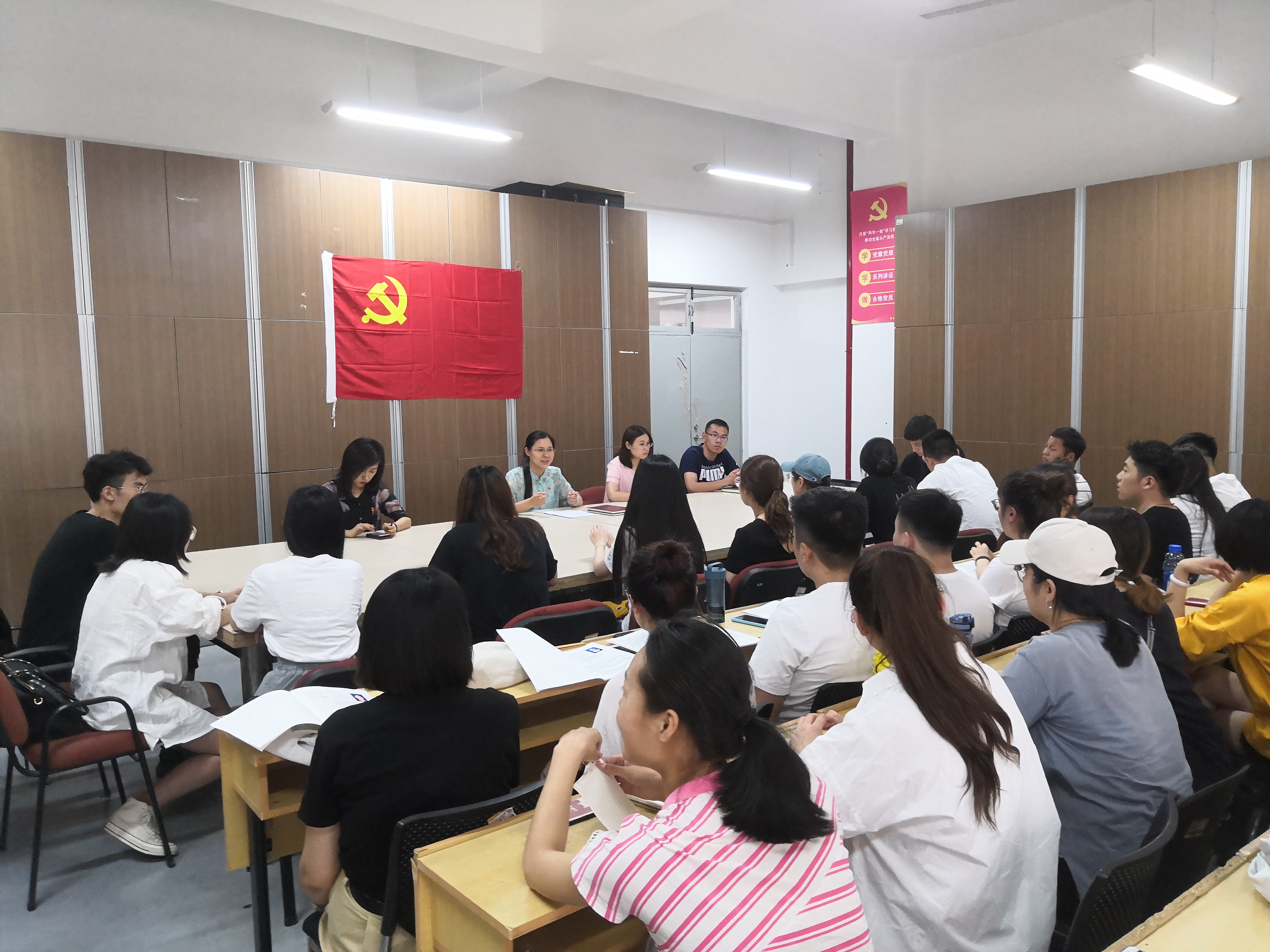 2019年6月17日和18日,视觉传达设计学院学生党支部在三楼多媒体教室分别召开了党员接收大会,会议由学生第一党支部书记刘阳主持,学生第二党支部书记陈瑶参加会议,党总支委员李莎莎、教工党员王敏列席会议。
