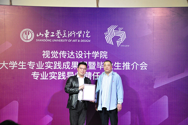 随后,孙大刚院长讲话,他指出视觉传达设计学院聘请一批优秀校友作为学生专业实践导师,旨在提高广大在校生的专业实践能力,更好的搭建院企交流合作平台,通过导师们社会资源与商业经验的分享,帮助同学们更优秀的专业实践成绩和职业发展规划。