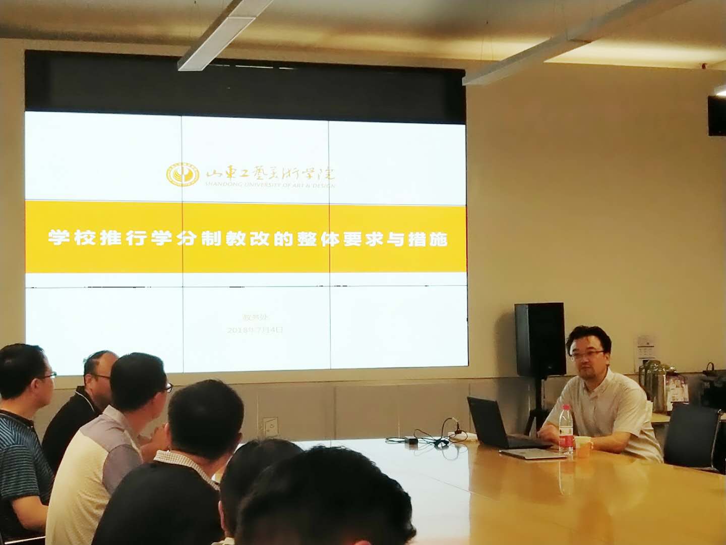 会议上,孙磊处长以《学校推行学分制教改的整体要求与措施》为题向全体与会人员做了专题讲座。首先,孙处长结合近期召开的全国高等学校本科教育工作会议精神,强调了学分制改革在高校本科教学和人才培养工作中的重要性。此后,结合国际通行的三类学分制教育模式以及国内其他艺术类院校试点学分制改革的经验,孙处长依次介绍了我校学分制改革的整体思路,并从课程门数与学分、课程属性与学分、课程逻辑与学分、课程结构与学分、各类选修课开课数量与时间计划、人才培养目标、课程与专业的关系、学生选课、教师开课能力等角度,对学分制改革和人才培养方案的修订工作进行了详细的说明。围绕学分制改革中与学生工作相关的德育与传统文化教育、创新创业教育、综合实践课程等方面,孙处长也结合我校实际进行了重点阐述,指出学分制改革重点在于培养学生的自我管理意识,实现以课程为核心、全过程育人的新模式。
