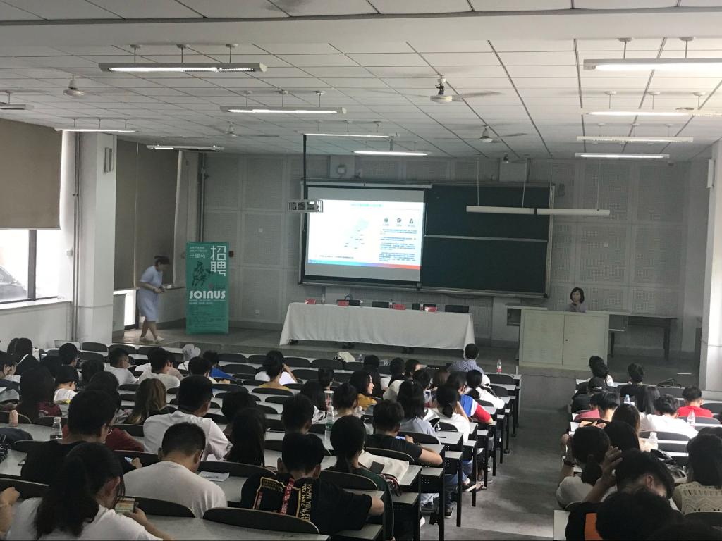 7月10日,视觉传达设计学院在一合堂举办了澳科品牌研发中心招聘会。招聘会由视觉传达设计学院副院长王晓峰主持,澳科品牌研发中心研发总监李化、副总监黄隽担任主讲。