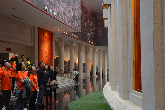 随后,同学们参观了全景画馆。站在旋转看台上,大家仿佛置身革命炮火连天、硝烟滚滚的战火之中,切身感受到了战争的残酷和爱国将领们为国奋战的英勇无畏。
