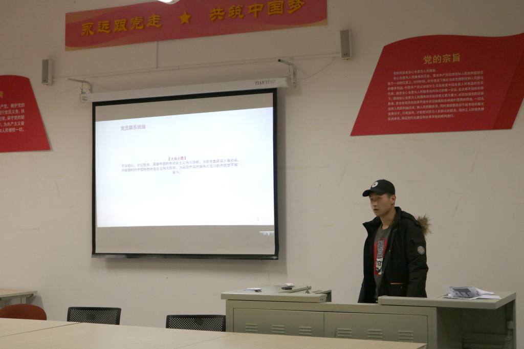 在“三个一”活动总结大会上,学生党员重点围绕十九大精神宣讲、2017级新生班级班风建设和学风引领进行汇报。本次汇报,采取个人讲述与PPT展示相结合的方式,图文并茂地向大家展示在“三个一”活动中,学生党员个人是如何开展活动的。在所联系的班级,学生党员为同学们详细宣讲了十九大报告,解读了十九大精神,重点讲解了我国进入新时代,社会主要矛盾出现了新变化,作为当代大学生应如何面对并顺应这个新时代,如何成为新时代的弄潮儿。学生党员还就所联系宿舍、个人如何开展活动进行了汇报。