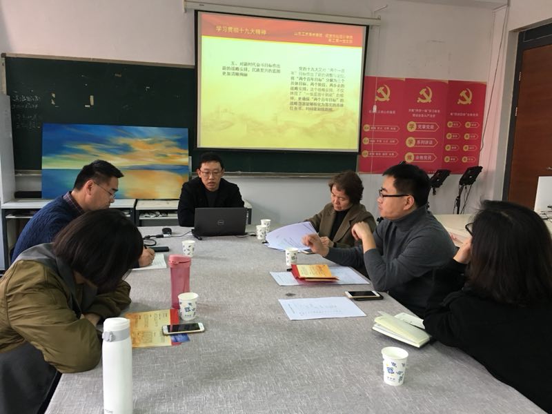 11月28日,按照视觉传达设计学院党总支学习贯彻落实十九大精神的统一安排,各党支部书记围绕十九大主题,分别在本支部内开展学习贯彻落实十九大精神宣讲活动。