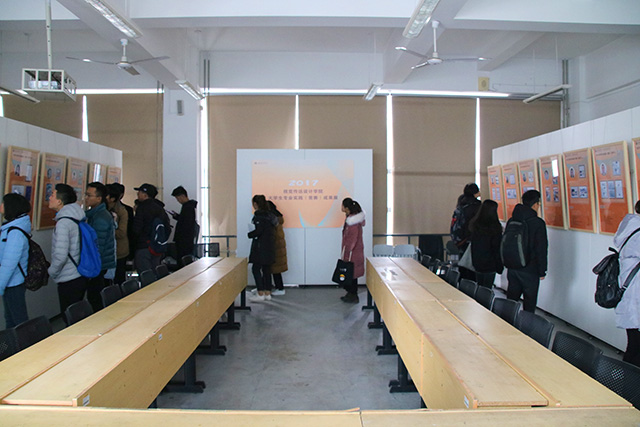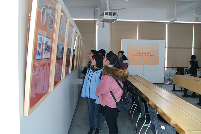 11月27日,视觉传达设计学院大学生专业实践(竞赛)成果展在综合办公楼二楼大学生专业实践中心(2005室)开展。