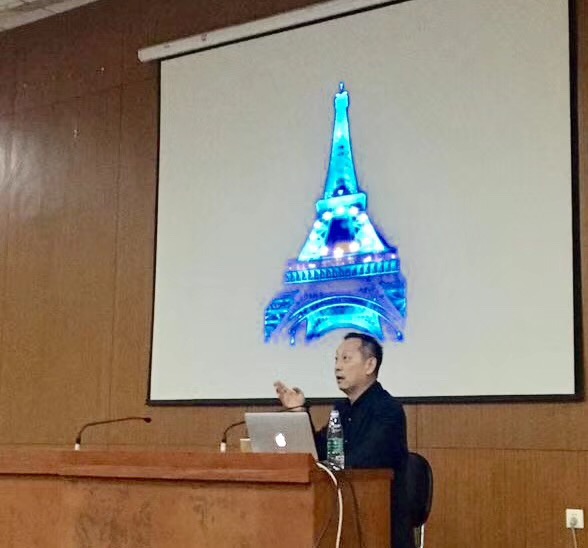 讲座伊始,王雪青教授分享了自己身边一个“离奇”的法国朋友的故事:他在农业用地用泊船建造了一栋奇怪的房子,却得到了艺术界大师们的一致青睐和赞赏,这恰恰体现了设计师的智慧与他的教学理念——设计师要开拓自己,不断用想象力来丰富自己,大胆、尝试并实践。接着,又讲述了自己在校传道授业时的感受和基础课程教学中的案例 。他从中国到法国求学和任教的经历,不仅仅是中西方文化的碰撞,更是中西方设计风格和思维的交流。他告诉同学们"设计不是一种职业,而是一种乐趣",并通过教学案例,鼓励学生大胆尝试,突破思维禁锢,发挥天马行空的想象力。他在教学过程中注重学生开放性思维和综合设计能力的培养的教育方式也对老师们的教学很有启发。随后,王雪青教授又以图片的形式分享了世界各地所见到的品牌形象及其应用设计,同学们目不暇接,为这些别出心裁的设计啧啧称赞,同时还传授给同学们应如何做出符合客户要求的品牌设计的知识要点——以设计师的视野寻找切入点,充分为客户着想,并深入挖掘资源,了解品牌文化内涵等。在讲座的最后,同学们踊跃提问,虚心求教,并获得了王雪青教授的耐心解答与深入讲解,同学们纷纷表示受益匪浅。