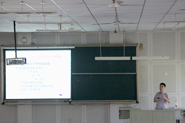 林老师首先就国家和学校的主要奖励与资助项目,申请条件与评定程序进行简单介绍。随后,林老师着重介绍了学校的国家及省政府励志奖学金,国家助学金、学费减免、国家助学贷款、应征入伍服义务兵役学费补偿代偿等项目进行了讲解。对勤工助学岗位的设置与管理、补助标准及支付做出详细的说明。林老师还重点介绍了孙长林奖学金的申请条件、评定程序,鼓励大家学好专业,争取学校最高荣誉。