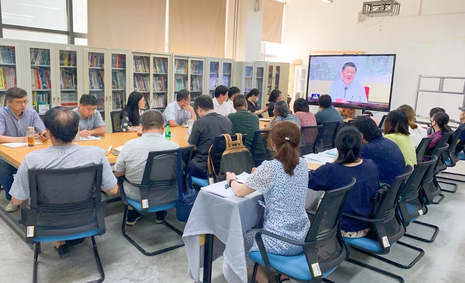 6月20日,工业设计学院组织全体教职工进行政治理论学习,党总支书记王玉杰主持学习,学院全体教职工参加学习。