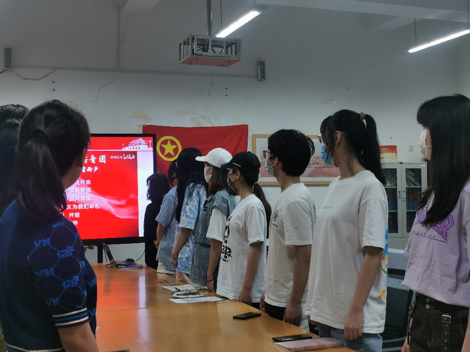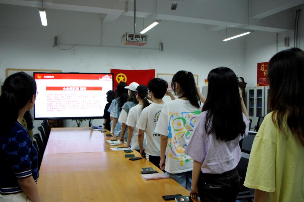 优秀团员代表王钰带领全体新团员进行宣誓,新团员们右手握拳,一字一句,铿锵有力,誓言代表的不仅仅是一种精神,更是一种责任与担当。