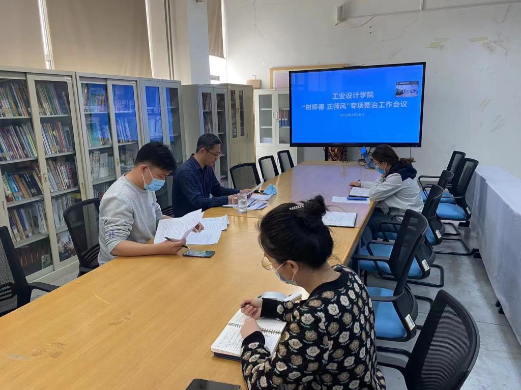 会上传达了学校关于开展“树师德 正师风”专项整治活动的目标要求,宣读了《工业设计学院开展“树师德 正师风”专项整治活动工作方案》,并就具体的时间安排和实施办法做了重点说明。会上还共同学习了《新时代高校教师职业行为准则》《关于高校教师师德失范行为处理的指导意见》,并要求老师们会后再认真学习,对照查找自身在政治思想、教育思想、教育方向方面,对待学生方面,治学方面等方面存在的差距与不足,明确今后的整改和努力方向。