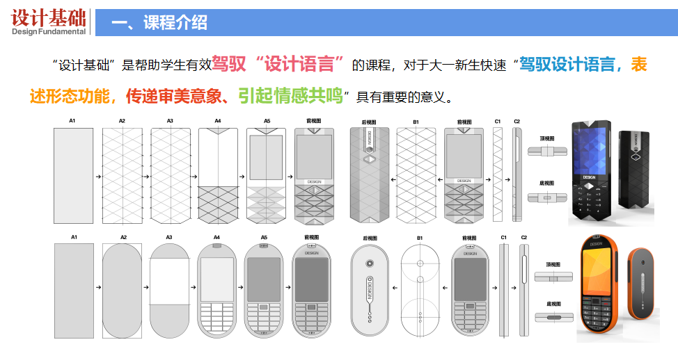 我院教师王君秋分别从设计基础的历史发展阶段、教学目标、教学重难点、课程创新点、课程建设、教学效果以及课程展望几个方面介绍了《设计基础》课程。该课程是产品设计专业所开设的抽象审美训练专业基础课程,将专业的审美认知特点与平面构成、色彩构成、立体构成、形态设计等抽象审美训练方法相结合,使学生掌握以设计视角观察审美客体、抽象审美语言,构建审美形式的方法。为后续设计课程提供了必要的抽象审美分析能力与创造能力。