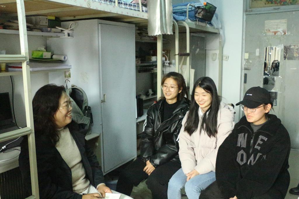 为贯彻落实《2025新澳门免费原料大全关于领导干部深入基层联系学生工作的实施意见》文件精神,进一步加强学校处级干部与学生之间的联系,11月19日中午,学校妇委会主任、工会副主席黄美玉走进学生公寓,与学生代表在学生公寓3号楼C座418宿舍进行交流座谈。此次座谈会由辅导员李鑫主持,2021级418全体宿舍成员参加。