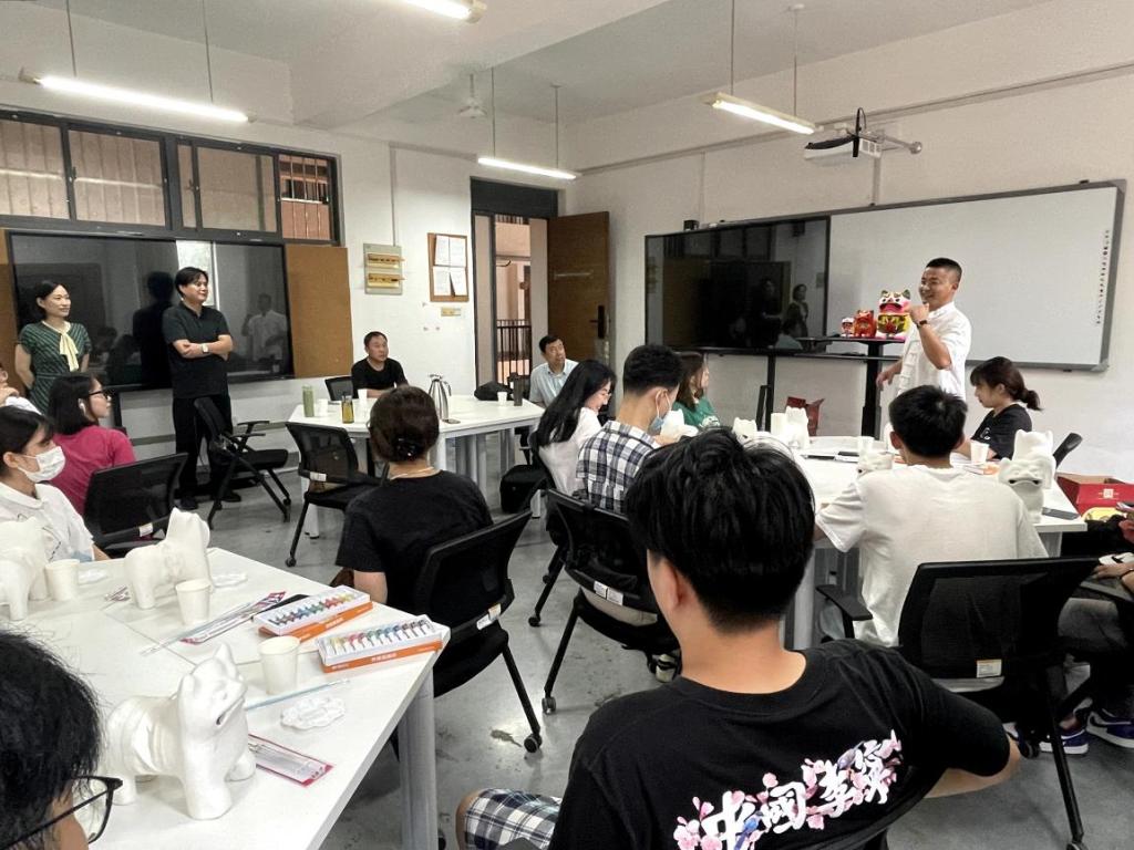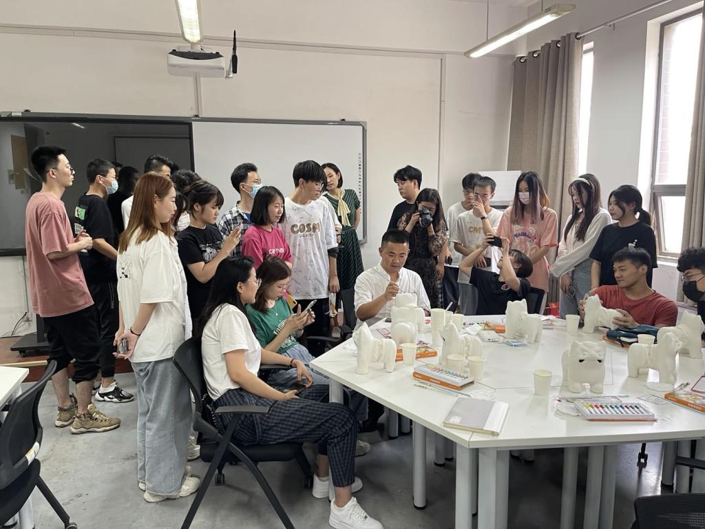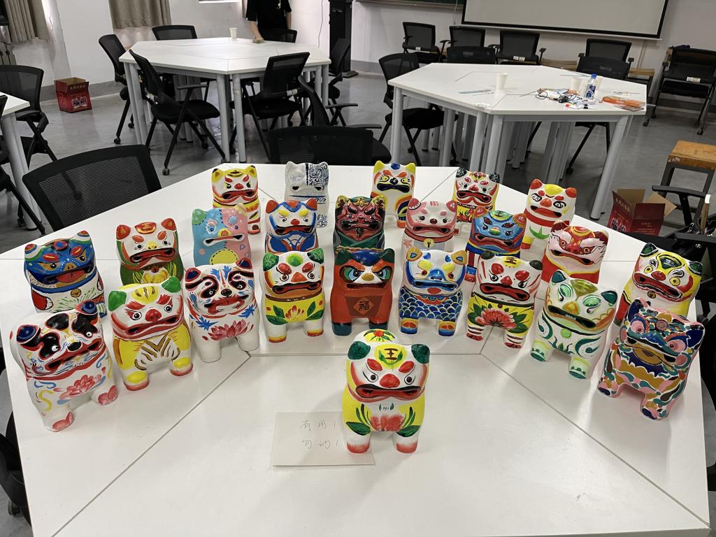 下午,聂鹏老师进行了创作“泥叫虎”的现场演示,并对26名学生的画虎的过程进行了指导。学生们兴趣浓厚,在对上午讲座中学习到的有关“泥叫虎”的理解的基础上,以“泥叫虎”作为载体,融入了自己的想法和创意,在创作过程中,学生们学习了这项民间艺术的绘画技法,在调色、上色的过程中,体验了在这种特殊材质上进行绘画的特点。学生作品题材多样,对传统画虎图案进行了再创造。