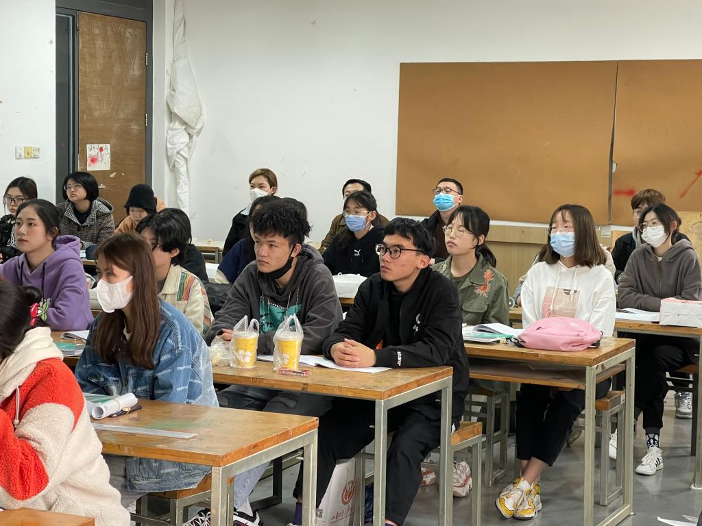 韩文涛旁听了汤超颖老师的设计制图课后,肯定了汤超颖老师的专业水平与教学水平,并就如何提高课堂教学效果作了简短交流。