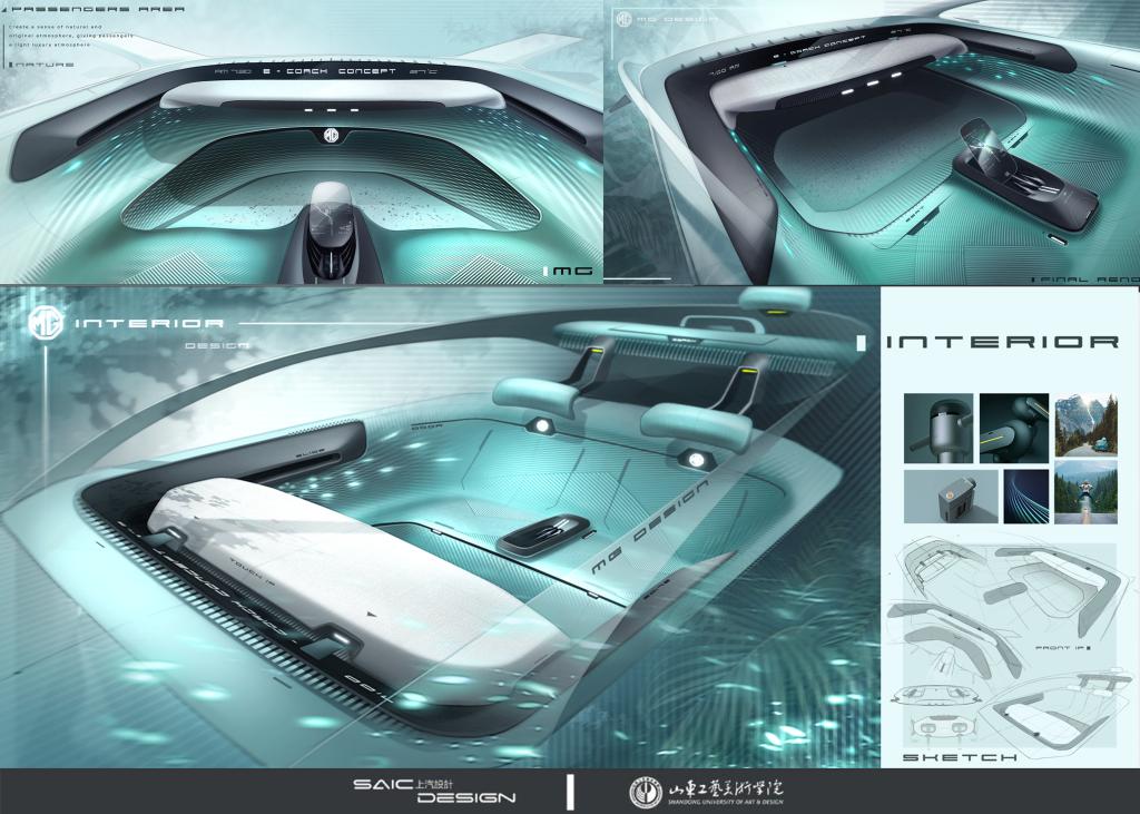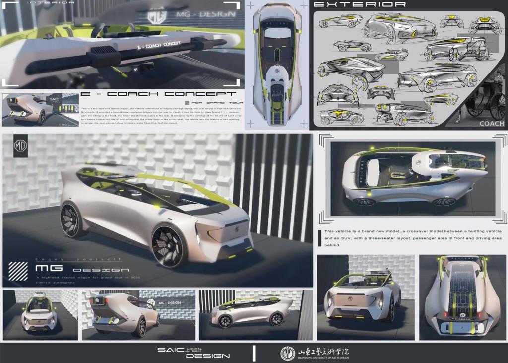 本届赛事以“发现汽车设计的明日之星”为主题,赛事针对上汽集乘用车公司“荣威ROEWE”与“MG名爵”双品牌发布任务书,参赛选手可自由选择荣威“集智新国潮”以及名爵“感性国际范”相关任务书开展设计创作。我校汪洋同学在付志伟、王奇光老师的指导下,客服疫情困难积极参赛,设计作品在全国600余件参赛作品中脱颖而出,获得上汽设计评审团与特约跨界专家的高度认可。设计作品名爵高端旅行车,参考马车的布局形式,设计提供一种配备管家、私人定制的出行方式,内饰采用“2+1”的三座布局形式,乘客在前,驾驶者(管家)在后方,由马车的缰绳设计而来的环带结构连接着前驾驶区,贯穿整个车身至后驾驶区座椅。整车为半开放式结构,用户能够在旅行中更好地亲近自然、感受自然;后方驾驶区域相对封闭,前方乘客区相对开放,前驾驶区可以实现前后移动,后驾驶区可切换到自动驾驶模式;方向盘可变身为无人机,驾驶者切换左右手柄即可实现对无人机的操作;外饰的设计整体保留简洁的风格,细节处加以黄色的点缀。整车设计带给人们一种新的布局、新的出行方式、新的生活体验之感,用户定位为高端客户。
