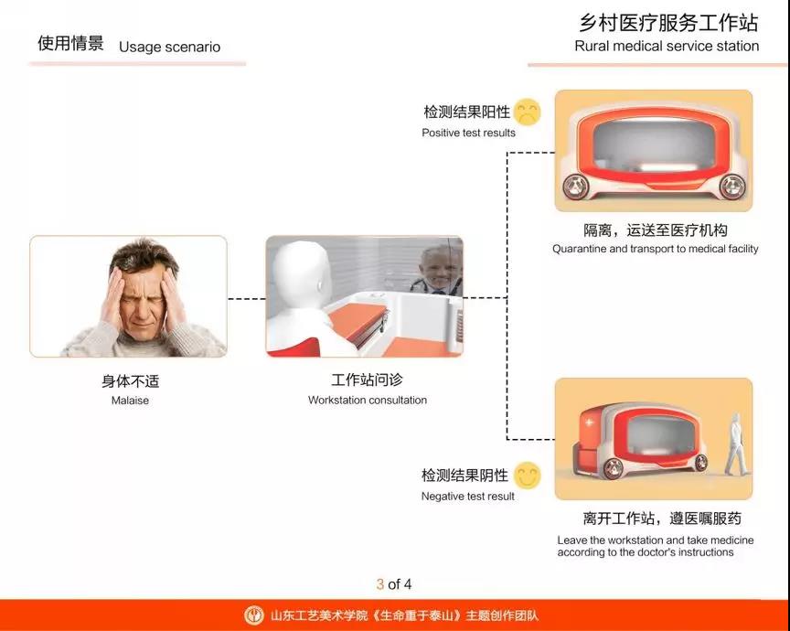 在一些偏远的乡村,基础设施和医疗设施相对落后,遭遇传染病疫情时,往往反应速度慢、治疗能力弱。针对这一问题,设计了这款乡村医疗服务工作站。