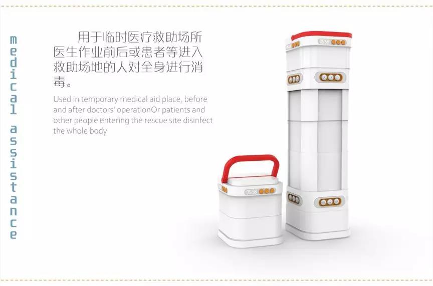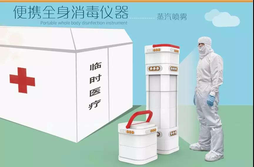 为了抗击新型冠状病毒肺炎疫情需要,多种空间场合需要全面消毒设备。便携式医用消毒设备,主要用于临时医疗空间医护人员、患者以及其他相关人员的全身消毒。