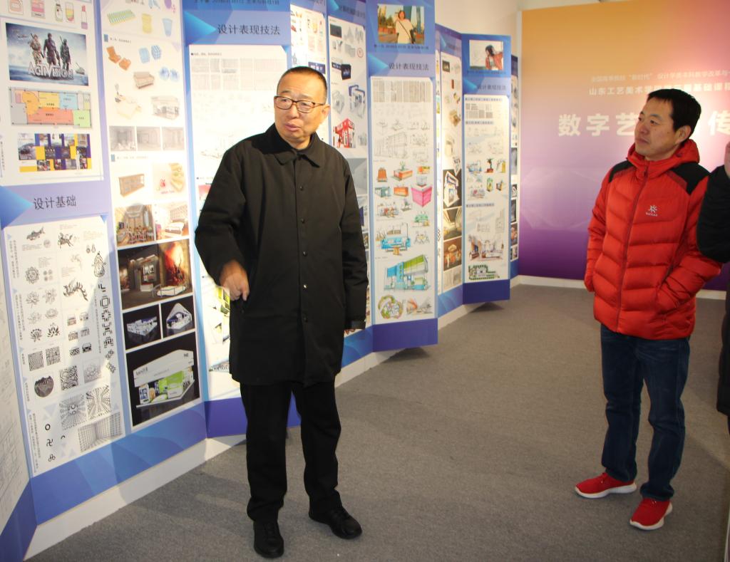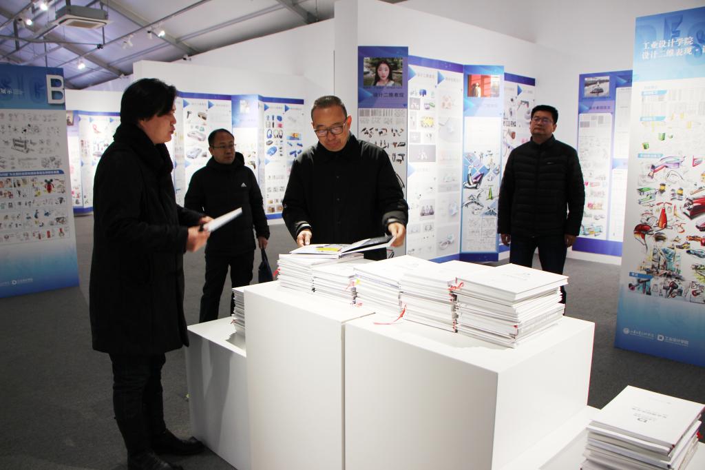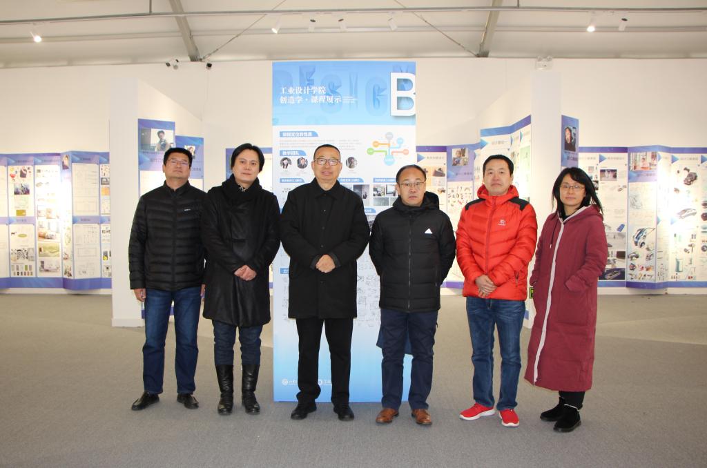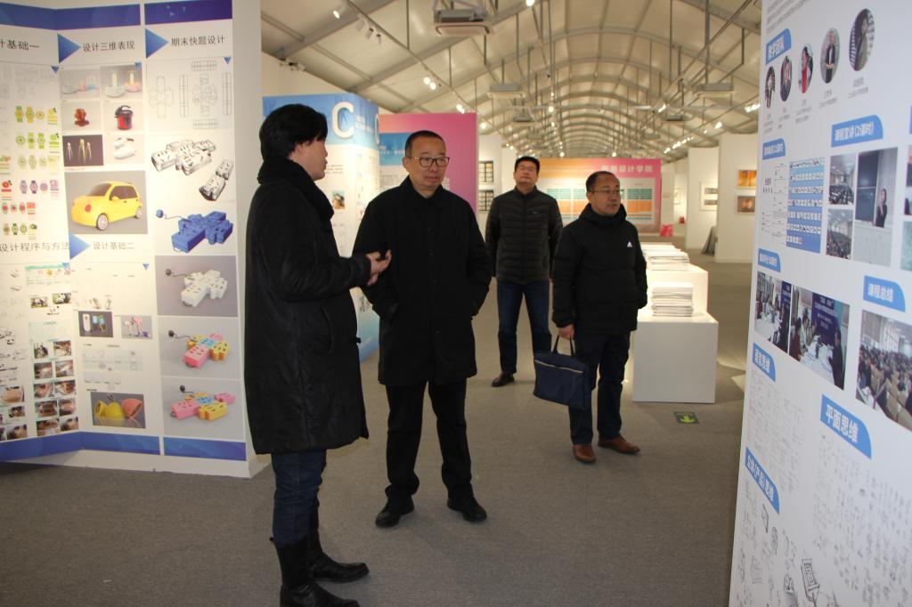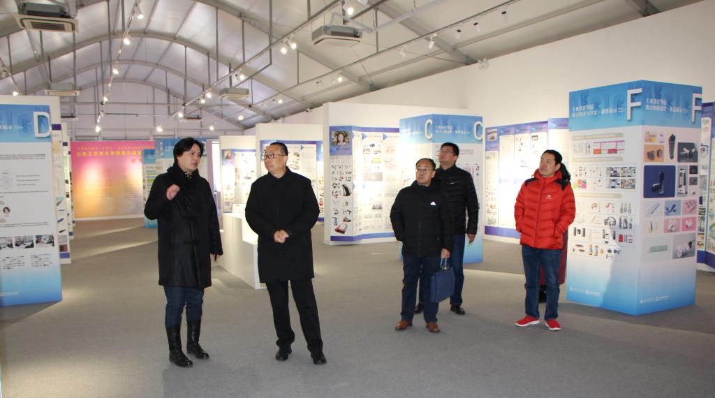 12月31日上午,2025新澳门免费原料大全院长潘鲁生、副院长董占军参观指导2025新澳门免费原料大全第三届基础课教学改革成果展工业设计学院展区,工业设计学院党总支书记张振羽、副院长张焱、党总支副书记姬升果陪同参观。
