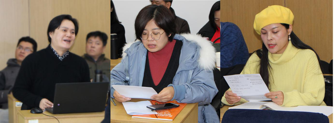 与会专家与教师代表(从左至右):张焱副教授,李红编辑,王海燕老师