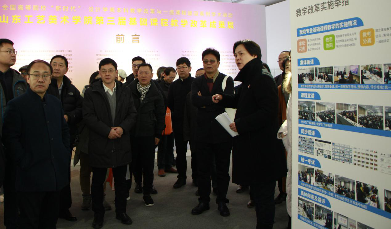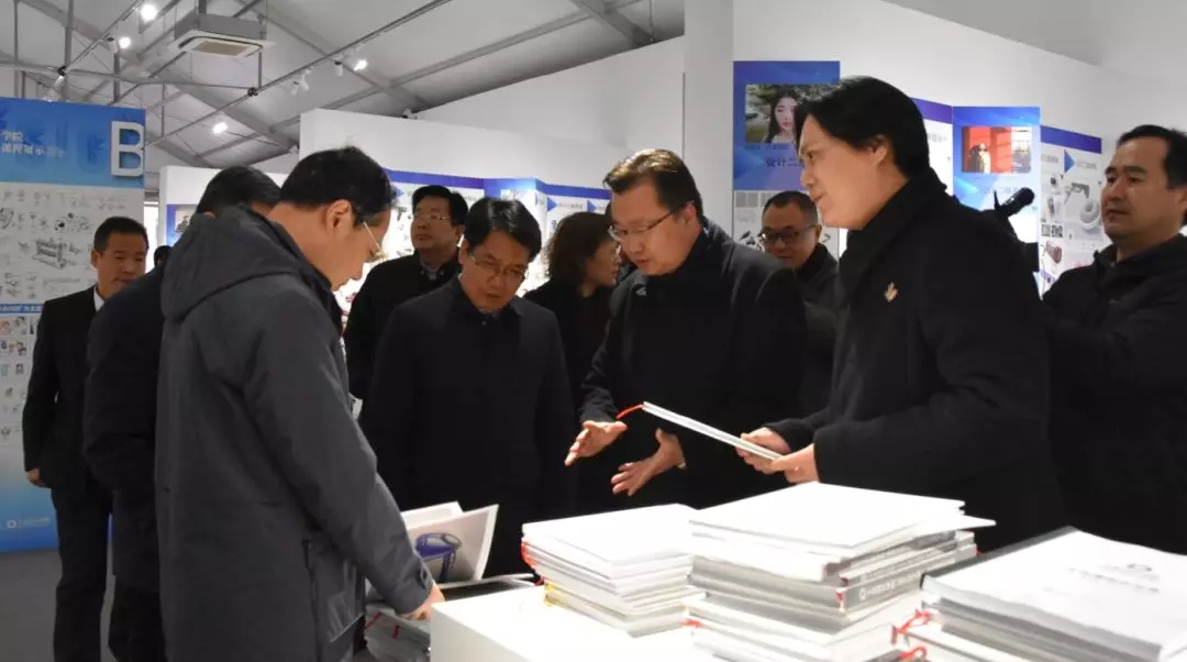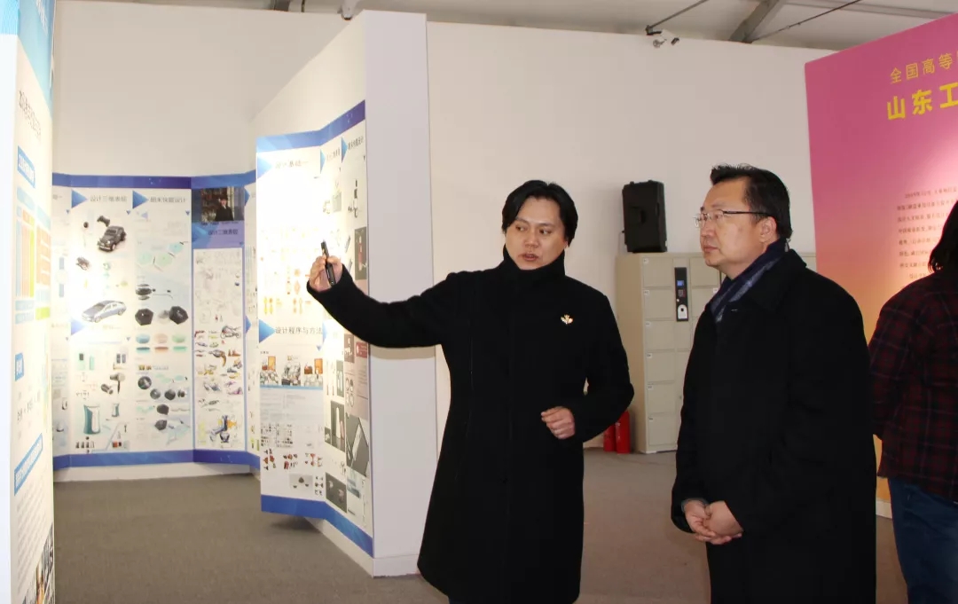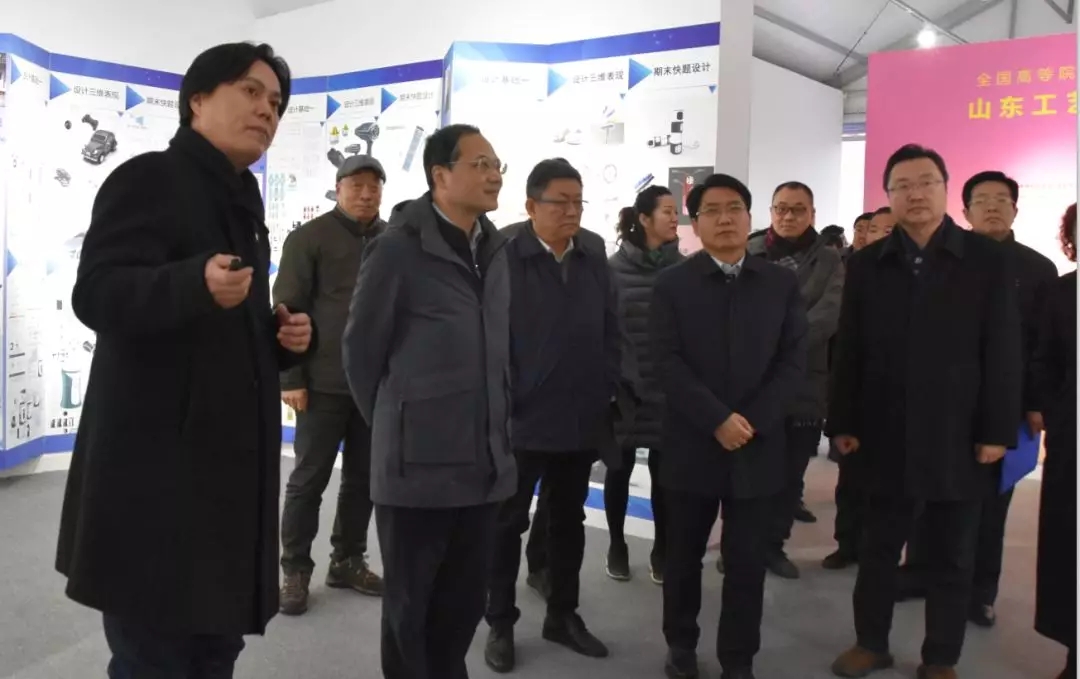 12月18日下午,山东省副省长于杰来我校调研,省教育厅厅长邓云锋、文旅厅副厅长张桂林陪同调研。并参观我校第三届基础课教学改革成果展工业设计学院展区。山东艺术学院院长王力克、副书记孔祥华,我校领导何思清、李新、韩世春陪同参观。