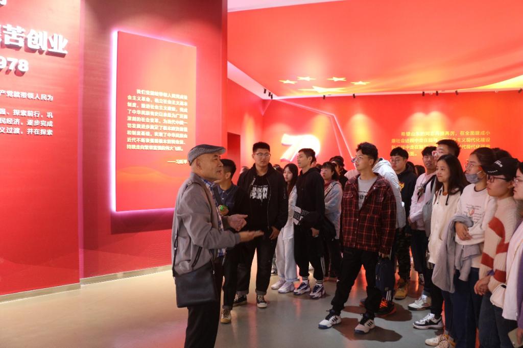 展厅分为主题大厅、序厅、第一部分“百废俱兴艰苦创业”、第二部分“勇立潮头砥砺前行”、第三部分“走在前列全面开创”和“美好生活未来已来”文创互动展区。参观活动中,我院党员停下脚步仔细观看展品,认真听取工作人员讲解,深切感悟辉煌成就,互相交流心得感悟,民族自豪感高涨。通过观摩文物史料、浏览展示图片、观看动态演示、参观互动体验等多种方式,感受了山东省70年来在在政治建设、经济建设、文化建设、社会建设、生态文明建设和党的建设等方面取得的辉煌成就。