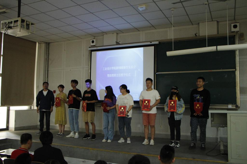 王延羽院长、张焱副院长、姬升果副书记向19级新生代班主任、助理班主任发放了聘书,以示鼓励。新生见面会在一阵阵热烈的掌声中落下帷幕。相信在领导的殷切期望,教师的认真教学下,学长学姐的带领帮助下,2019级的新生们能够更快地融入到的工业设计学院这个大家庭的学习生活中。