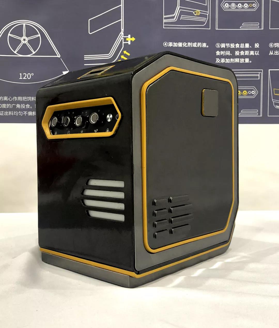 该设计的服务人群是饲养以水产膨化浮性饲料为食的淡水鱼的鱼塘工作人员。通过网上查找资料、观察法、用户访谈等调研方法,确定了产品的两大功能模块,分别是自动投食功能和食台搭建功能。功能模块在结构上排列紧密,外观造型方正稳固又不失时尚,合理地解决了淡水养殖过程中存在的投食不便和剩余饲料污染水质这两大问题。