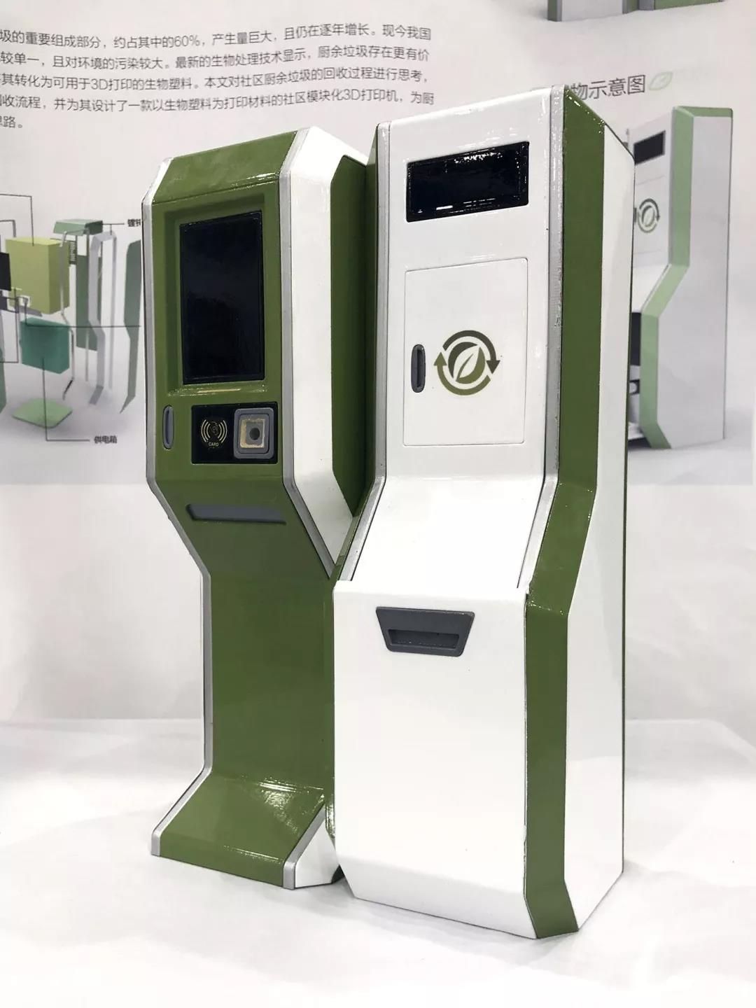 该设计针对新型厨余垃圾处理技术、3D打印和社区内对智能产品有一定操控能力的居民进行了网络、实地和问卷调研,运用产品创造方法中的定点法,以平面设计呈现了厨余垃圾回收和处理的大致流程,以三维产品的方式呈现了以厨余再生产品——生物塑料为打印材料的社区3D打印机。在3D打印机的外观造型上采用阴阳凹凸的设计,能够引导用户对产品的使用;功能结构上采用了操作区和打印区分离的模块化处理,使产品的放置数量和设备的后期维修更加灵活。整个设计发掘了厨余垃圾的新型利用价值,为厨余垃圾的处理提供了新思路。