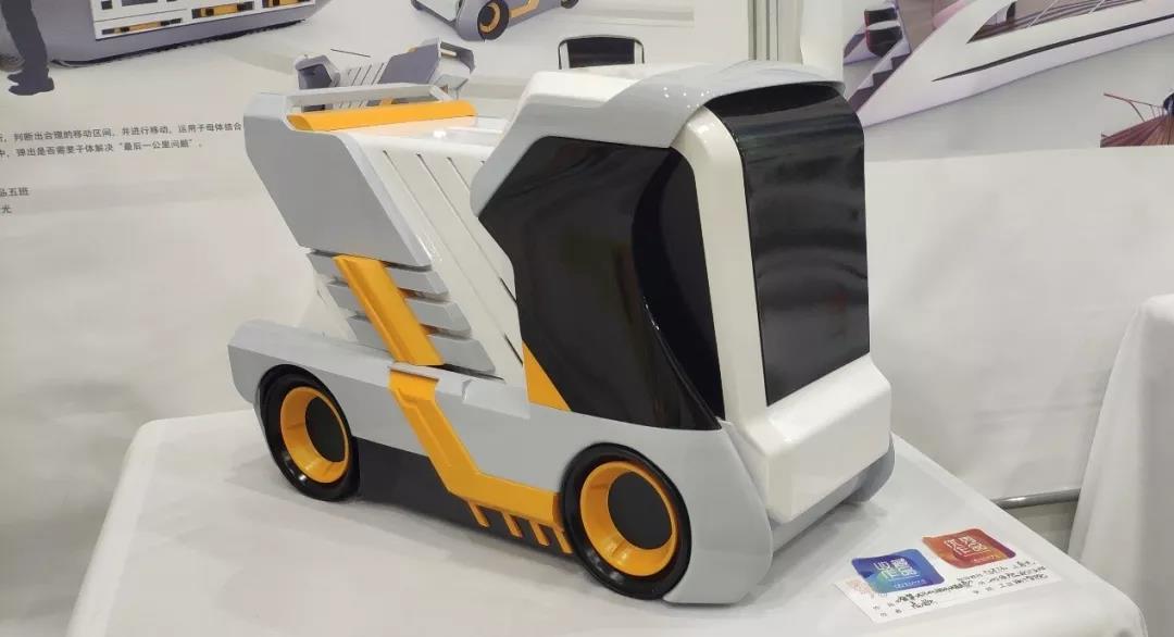 车头设计提取眼镜蛇的造型进行形态仿生,仓储模块设计提取了蜗牛外壳的结构仿生;为了解决配送问题,采用子母体形式,解决物流车单次少量配送的弊端。后轮与舱体的托盘设计,采取半包裹结构,使轮子的变化角度灵活,提高环境适应性;车身整体中部是储存仓模块,运用了伸缩结构,以便于在快递数量增多情况下,合理配送,提高效率。智慧快递柜通过对大数据的分析,选择合适的区间位置,计算合理配送距离,方便送取件。中部快递舱体可根据快递的体积大小,合理配置内部结构,节省空间,从而达到高效化,合理化,智能化。