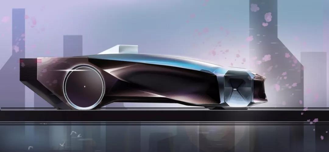 整车采用不对称设计,在有机型体中寻求联系和平衡,整体外观采用对角关联的造型,高度配合车内乘客相对交错而坐的人机布置。侧面造型同样前后交错形态,通过对主副驾驶位的结构调整,使得车辆姿态前低后高,配合贯穿侧面的肩线,营造出富有运动感的车辆姿态。将日产家族的设计语言和型面构成形式融合进全新的设计之中,前脸与车尾采用多功能的内嵌LED屏幕,生成电子车标和其他车辆信息。不仅有装饰作用,更增强了车辆和行人以及乘客的沟通和互联。内部实景模拟的智能车窗在外部封闭的情况下,可将外部景像完整的传递给乘客,保证车辆乘员的私密性,同时省去传统的屏幕与实体按键的交互区域,车窗部位的显示器同时兼具车辆信息的显示以及与乘客的交互功能。整个设计将交通工具放入未来可实现的系统当中,包含未来共享经济背景下的私人交通工具、共享空间的造型设计,以及未来众多生活方式的畅想与规划。